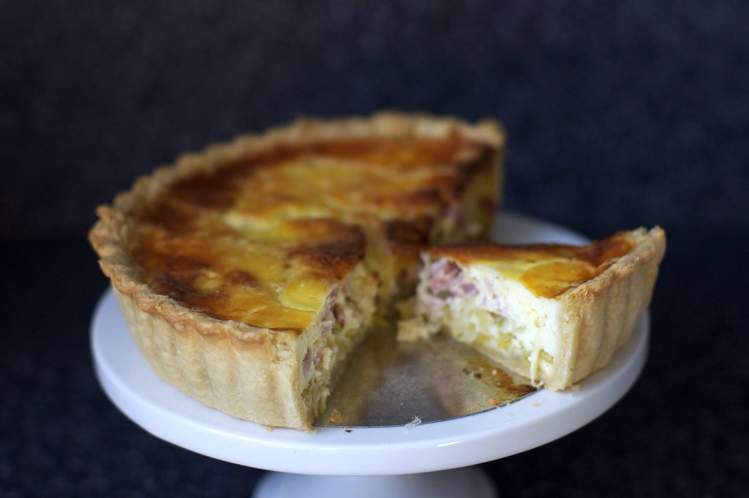 I crave a good quiche with a luxe, bronzed finish like clockwork on rainy spring days. What sets this Quiche Lorraine from classic versions is two decadent additions: a heap of caramelized leeks and a rich tang from sour cream in the filling.