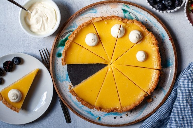 A great big puddle of winter sunshine; a lemon curd tart for home cooks like us. Whole eggs, no rolling pins, no pie weights, no thermometer. It’s fancy enough to be served to the fanciest people at the fanciest brunch, but simple and sunny enough to make a dreary winter day feel brighter.