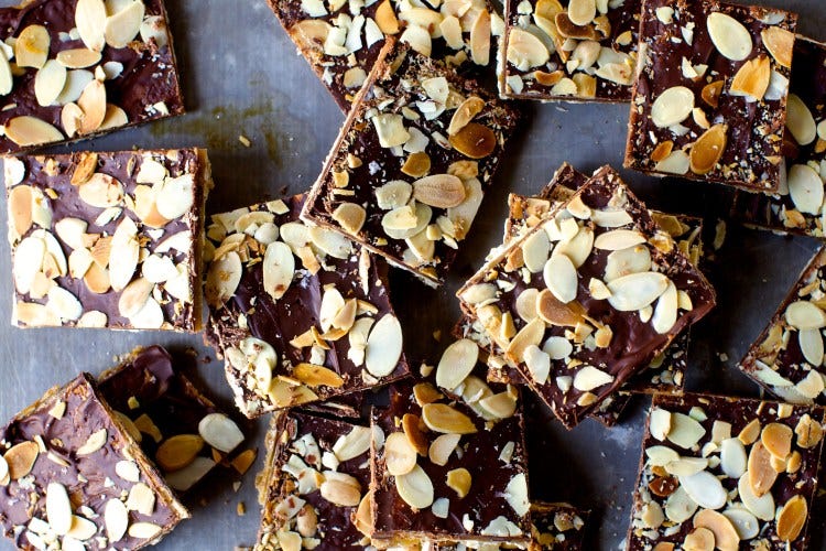 Salty, buttery, chocolaty, crunchy, and habit-forming, these are so easy to make, well, I know exactly what I’m doing with the unused box of matzo I just found.