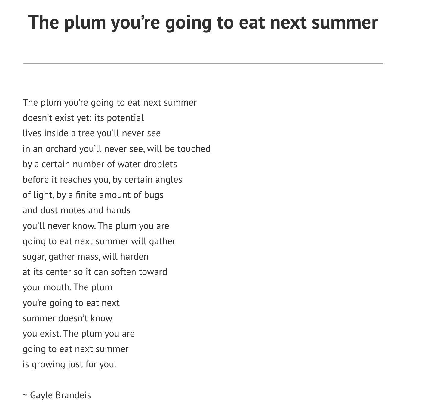 The Plum You’re Going to Eat Next Summer is a perfect New Year’s poem.
